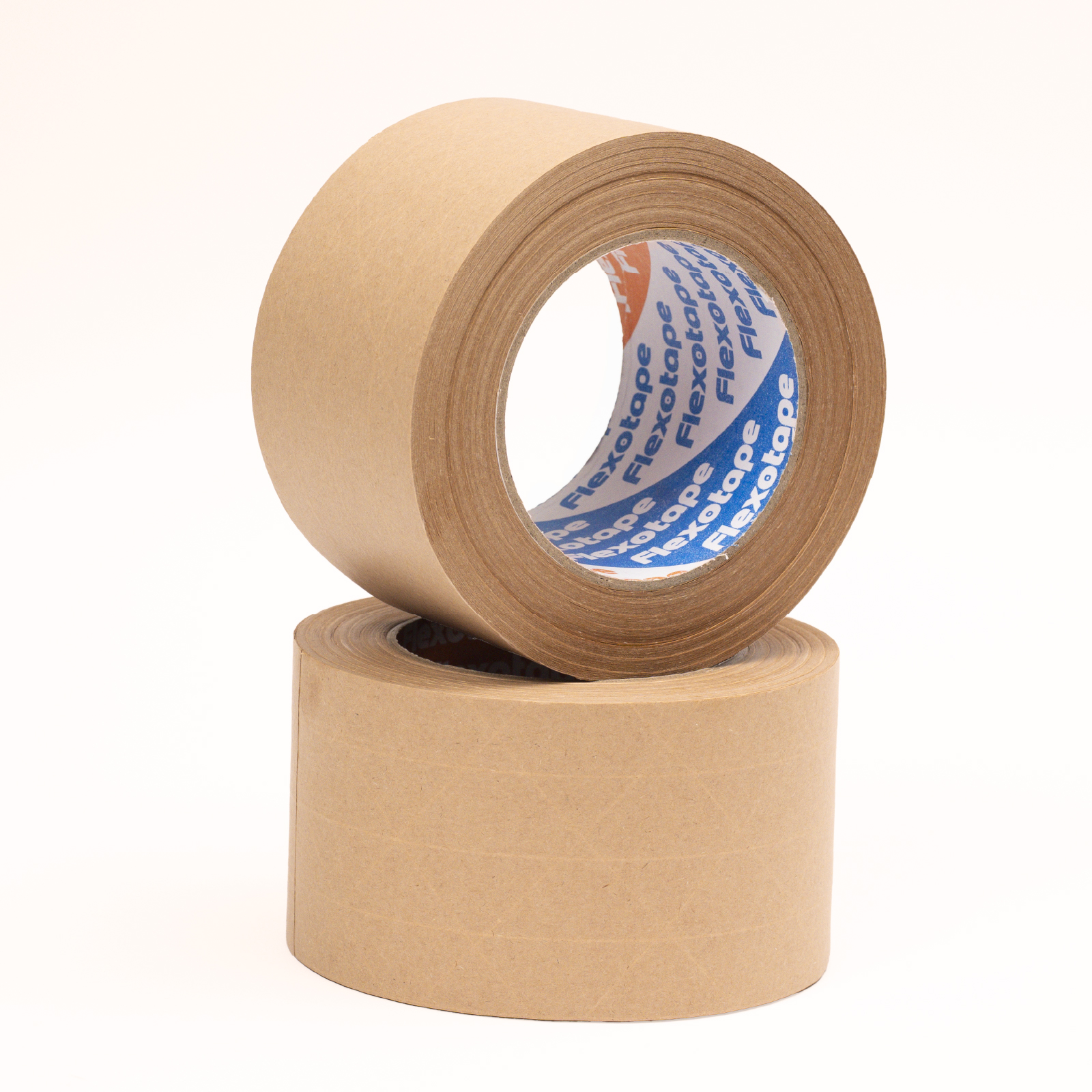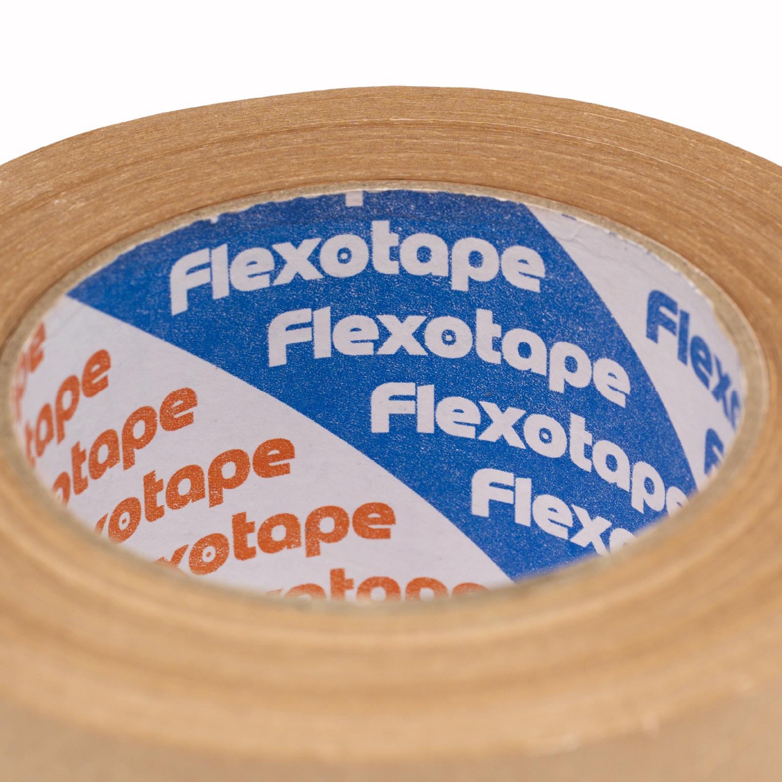 La cinta adhesiva Kraft reforzada con pegamento a base de agua Flexotape es la solución ideal para quienes buscan un sellado fuerte, sustentable y de apariencia profesional en sus empaques. Fabricada con papel Kraft de alta resistencia y fibras reforzadas, esta cinta adhesiva ofrece una excelente adherencia sobre cartón, madera y superficies porosas, brindando un cierre seguro que soporta condiciones de transporte y almacenamiento exigentes.