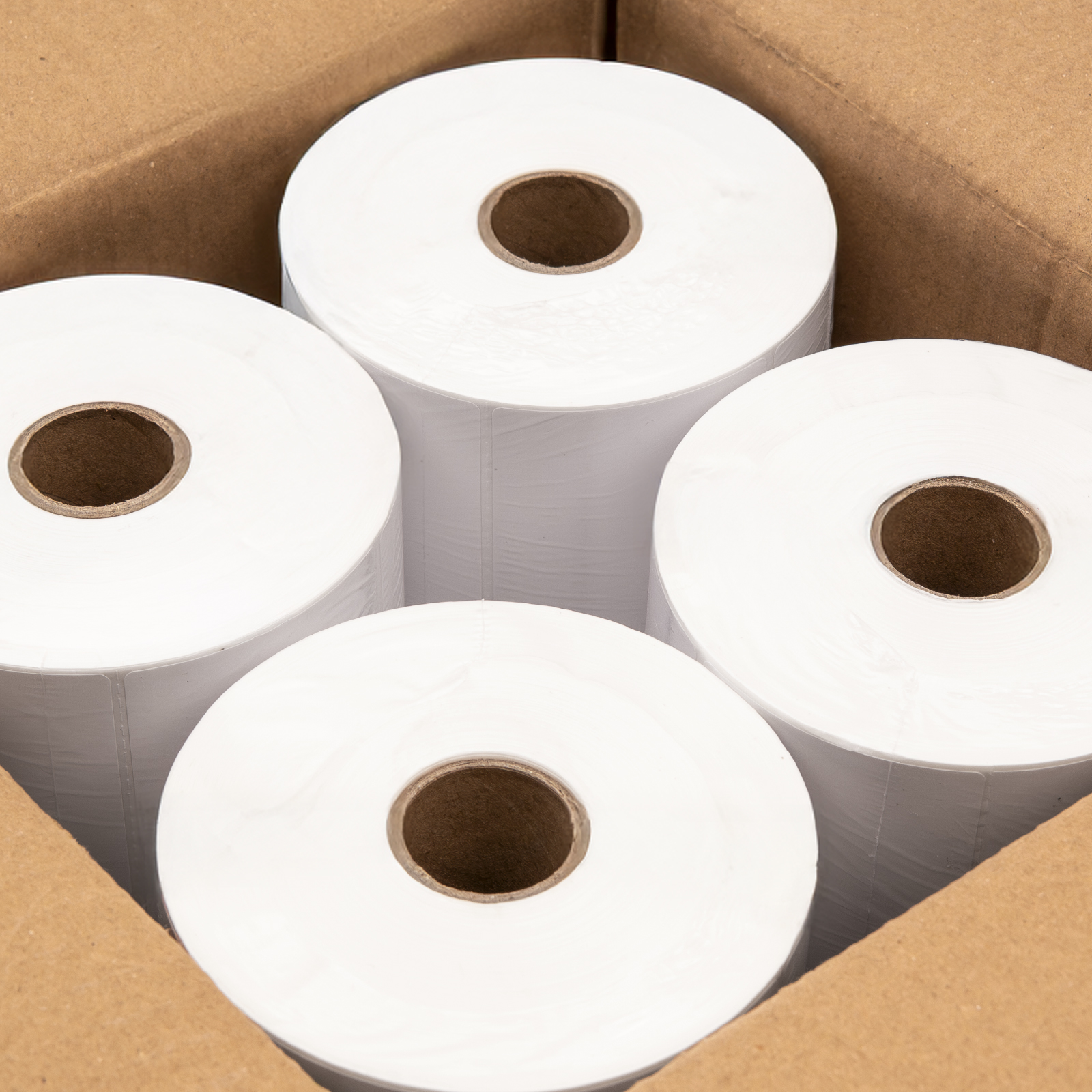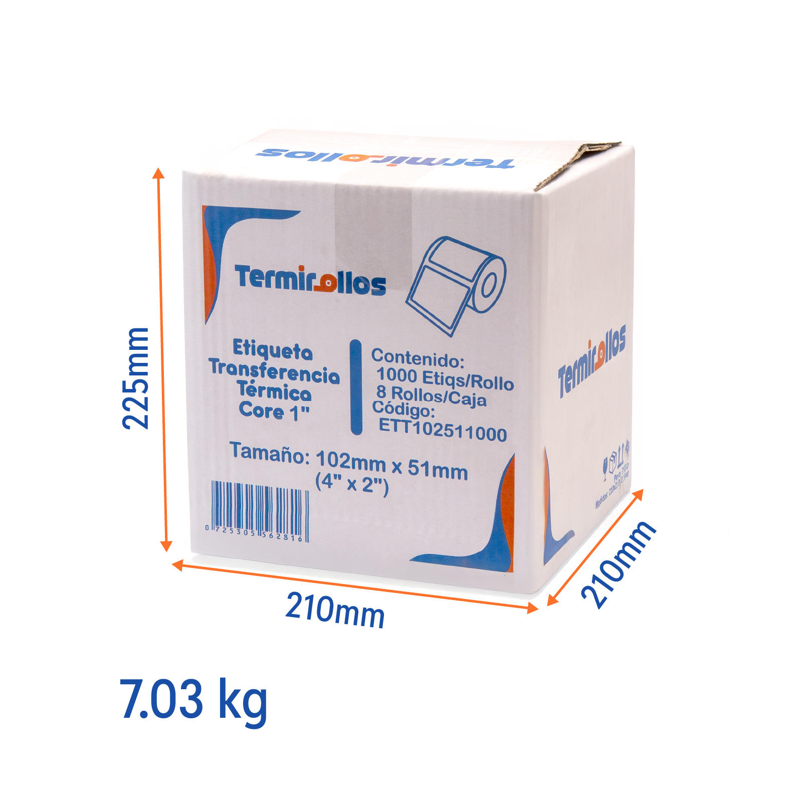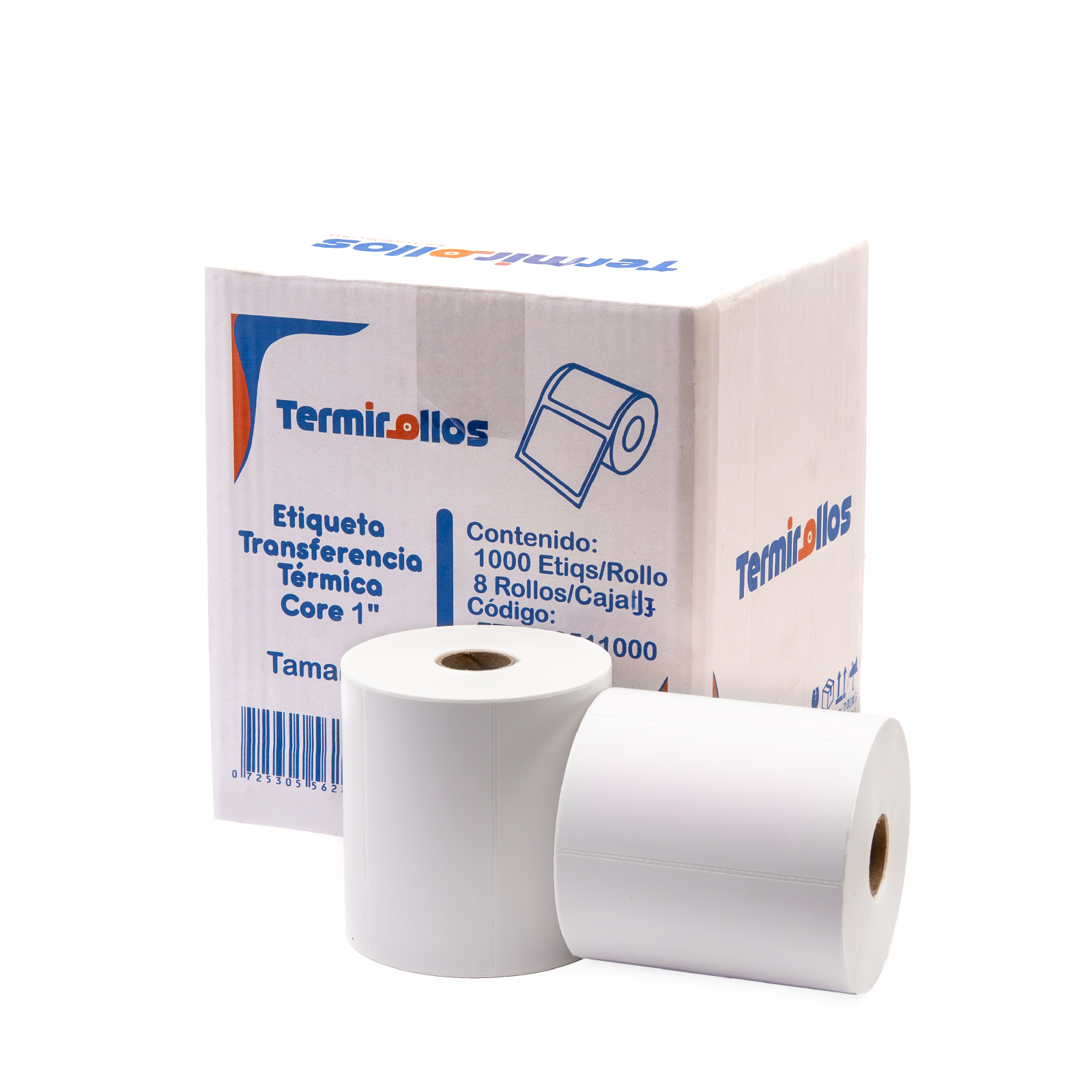 ETIQUETA DE TRANSFERENCIA TERMICA 102MM X 51MM (4″ X 2″ ) 1000PZ/ROLLO CORE 1″ CAJA DE 8 ROLLOS
