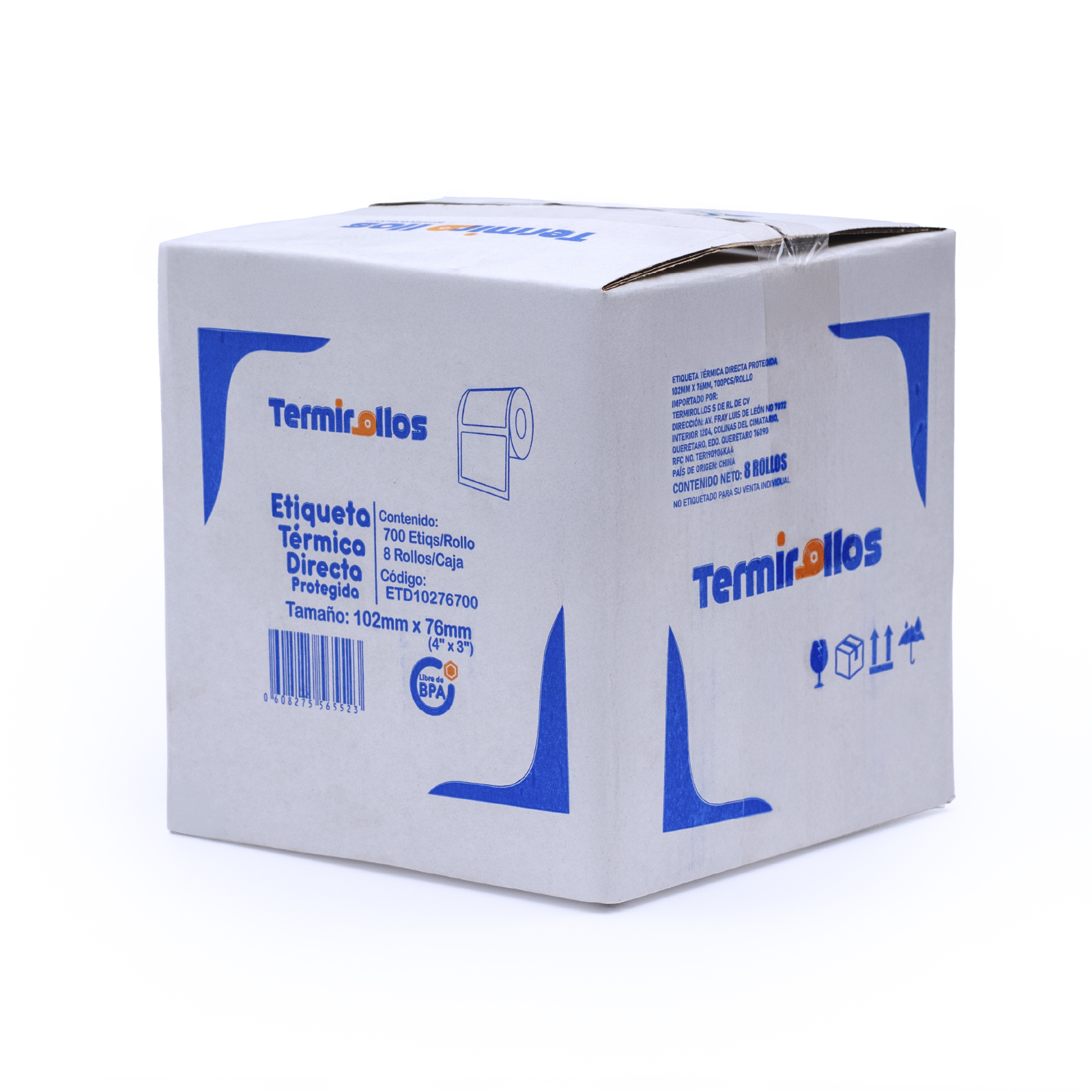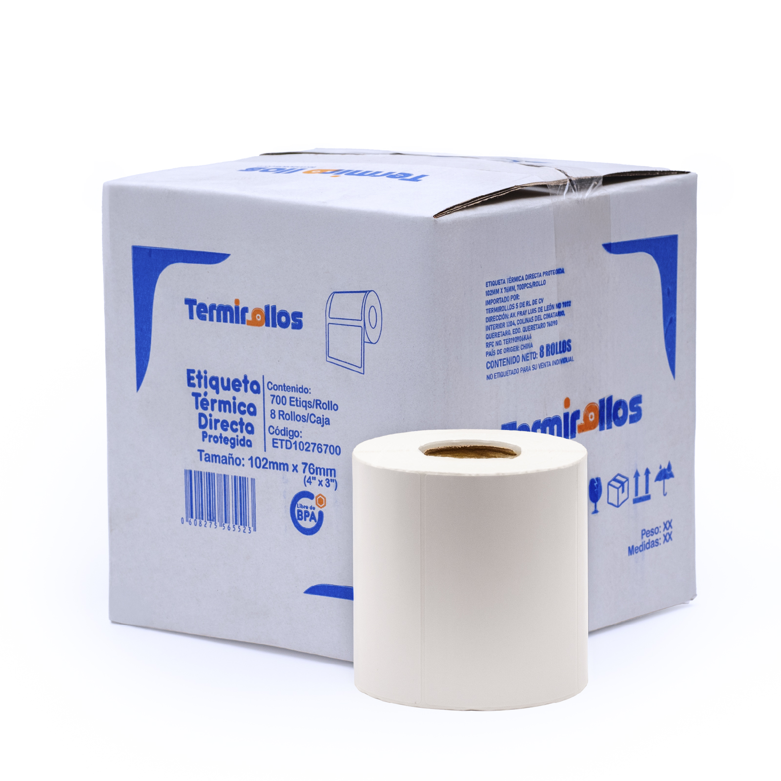 Con un tamaño de 102 x 76 mm, cada rollo contiene 700 piezas y cuenta con core de 25 mm, compatible con una amplia variedad de impresoras térmicas directas. Su presentación en caja con 8 rollos es perfecta para operaciones con alto volumen de impresión, facilitando la gestión de inventarios y asegurando continuidad en la operación diaria.