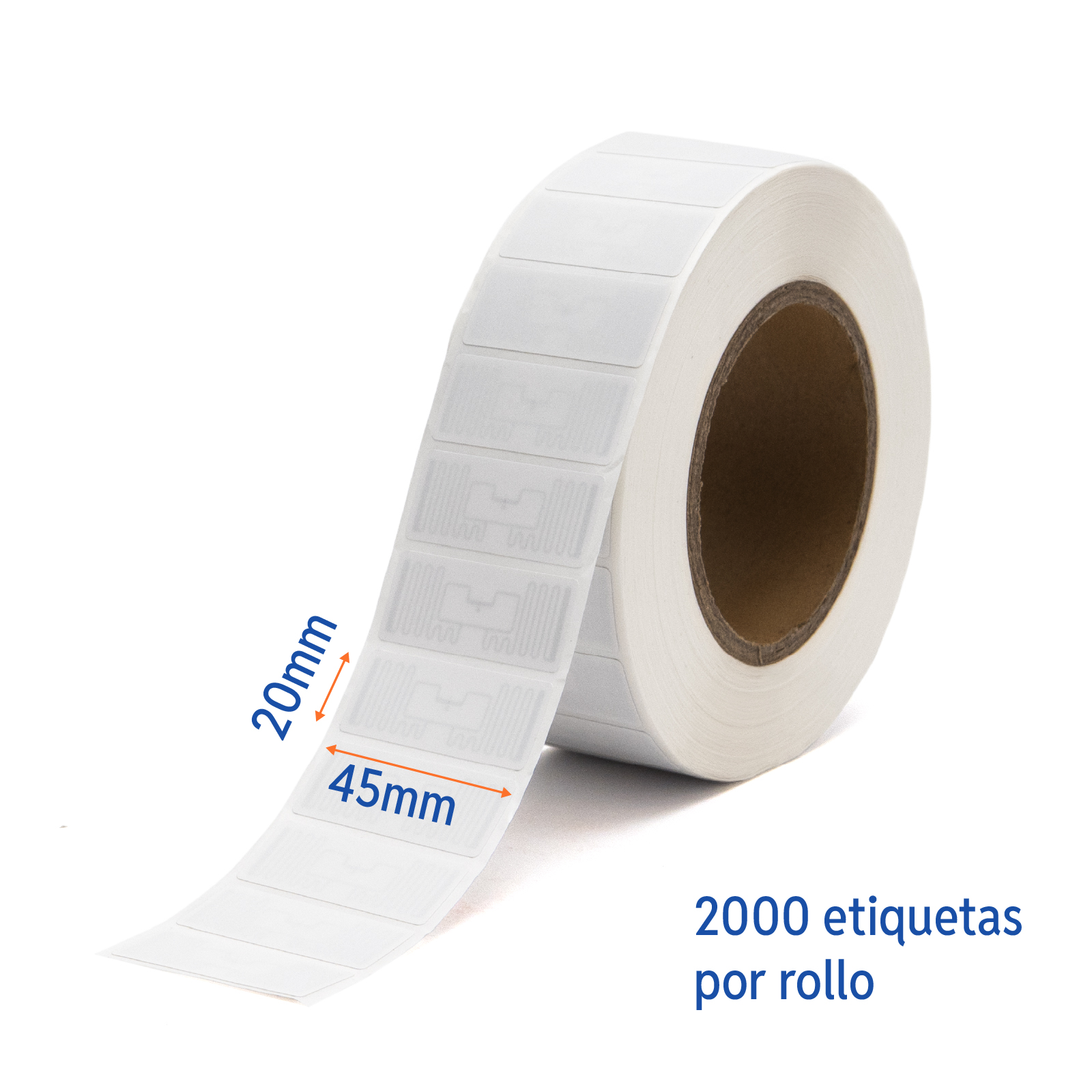 Con un tamaño de etiqueta de 45 x 20 mm y un inlay de 42 x 16 mm, ofrece un equilibrio ideal entre capacidad de integración y rendimiento de lectura. Su presentación de 2000 piezas por rollo la hace perfecta para operaciones de alto volumen que requieren etiquetado continuo y eficiente, mientras que la caja con 1 rollo facilita su manejo y almacenamiento.
