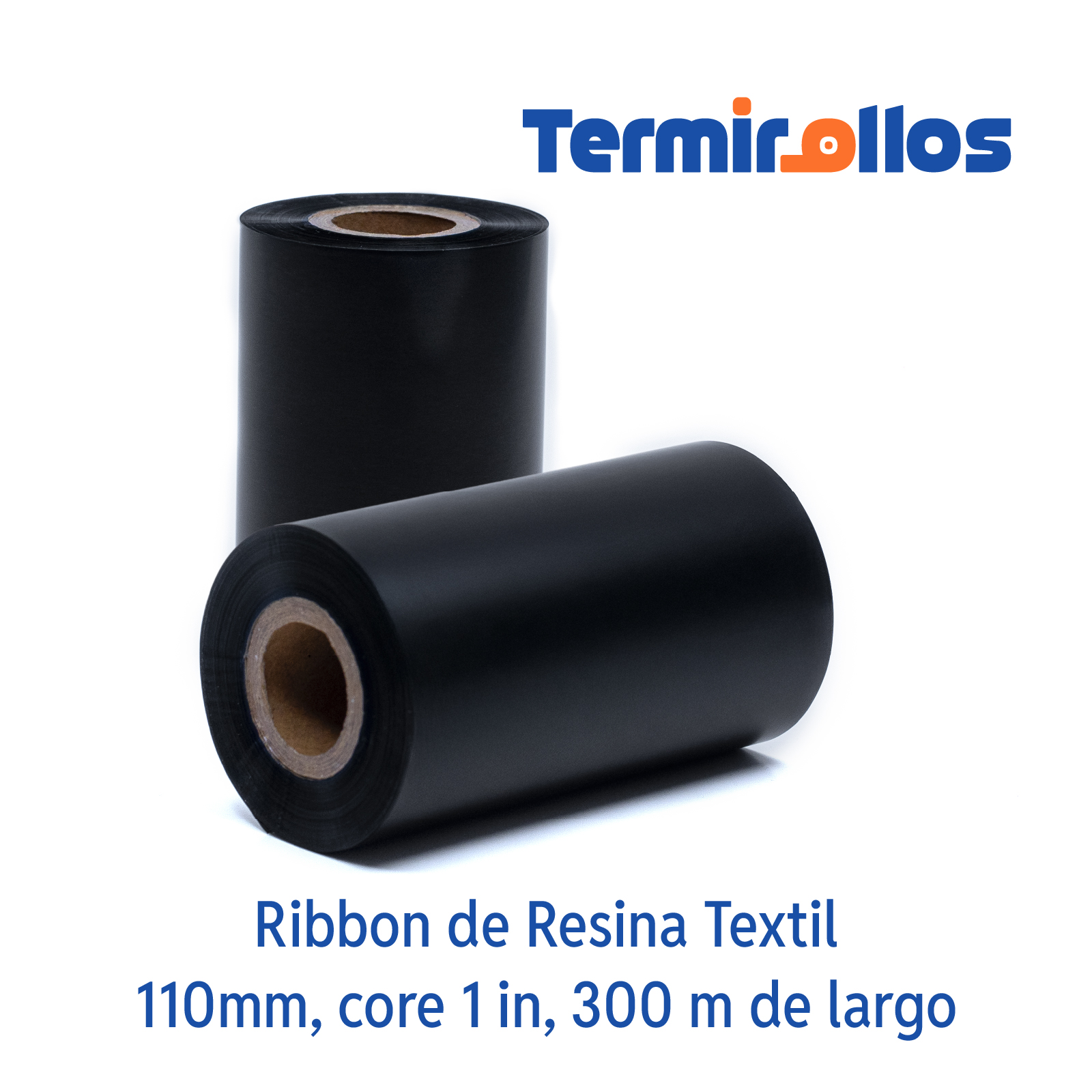 RIBBON DE RESINA TEXTIL 110MM X 300MTS CORE 1″ NEGRO OUT CAJA DE 10 ROLLOS