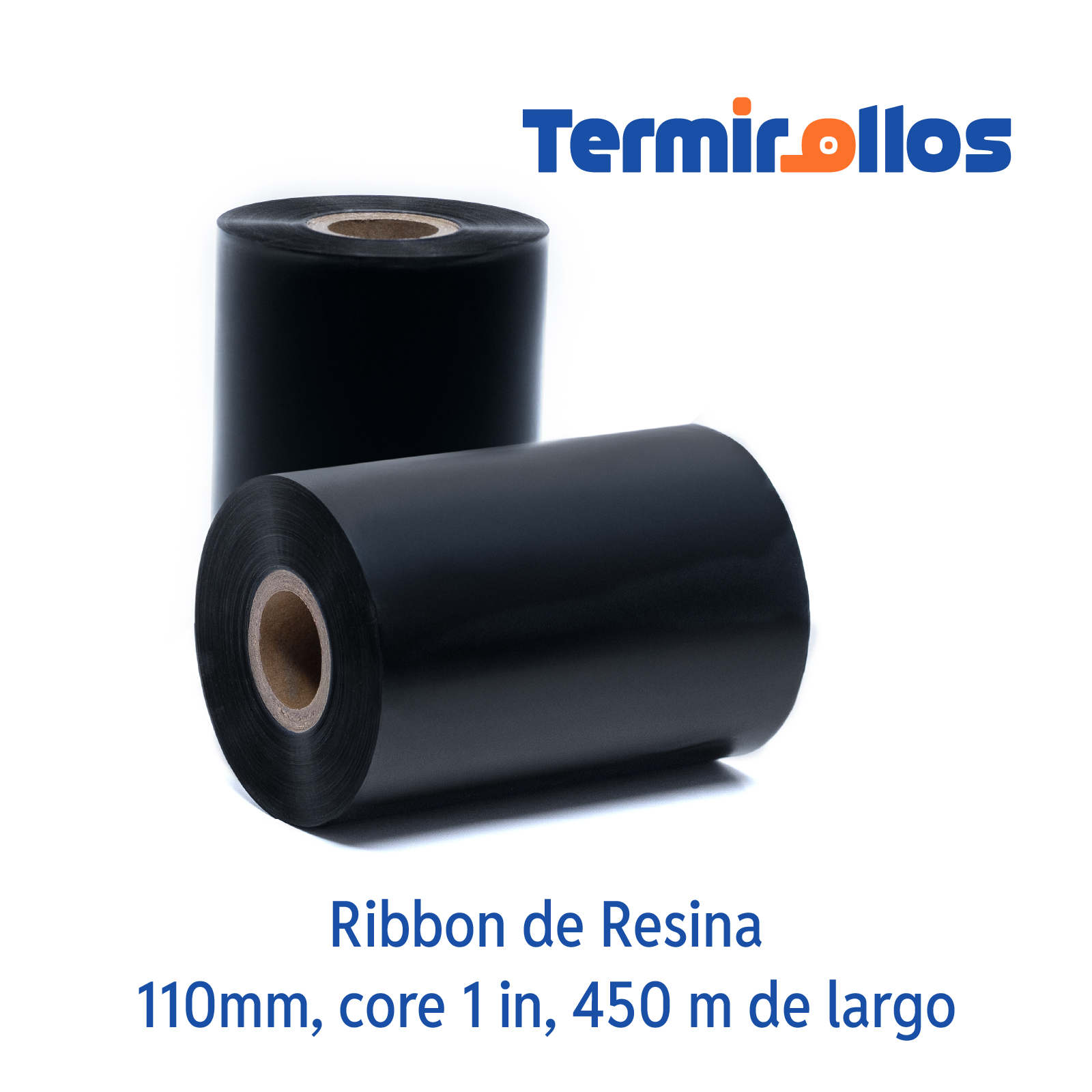 RIBBONS DE RESINA 110MM X 450MTS CORE 1″ NEGRO OUT CAJA DE 8 ROLLOS