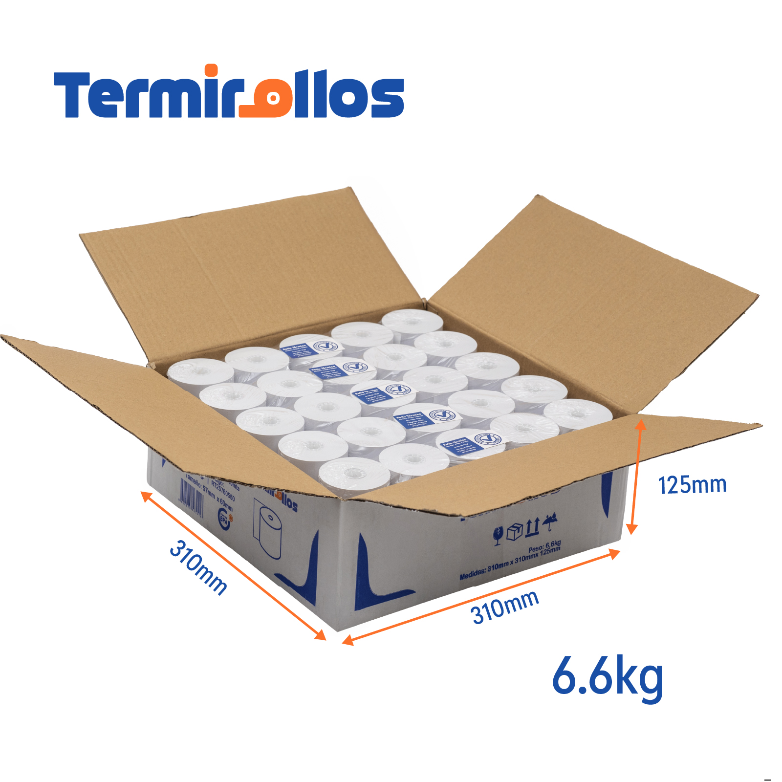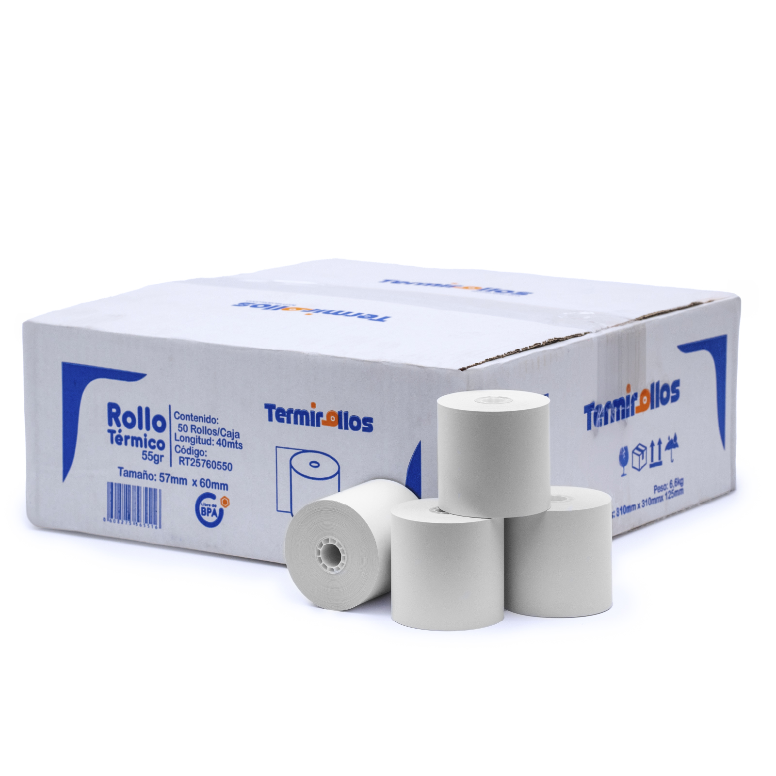 ROLLO PAPEL TERMICO LIBRE BPA 57MM ANCHO X 60MM DIAMETRO 55GRS 40MTS CAJA DE 50 ROLLOS