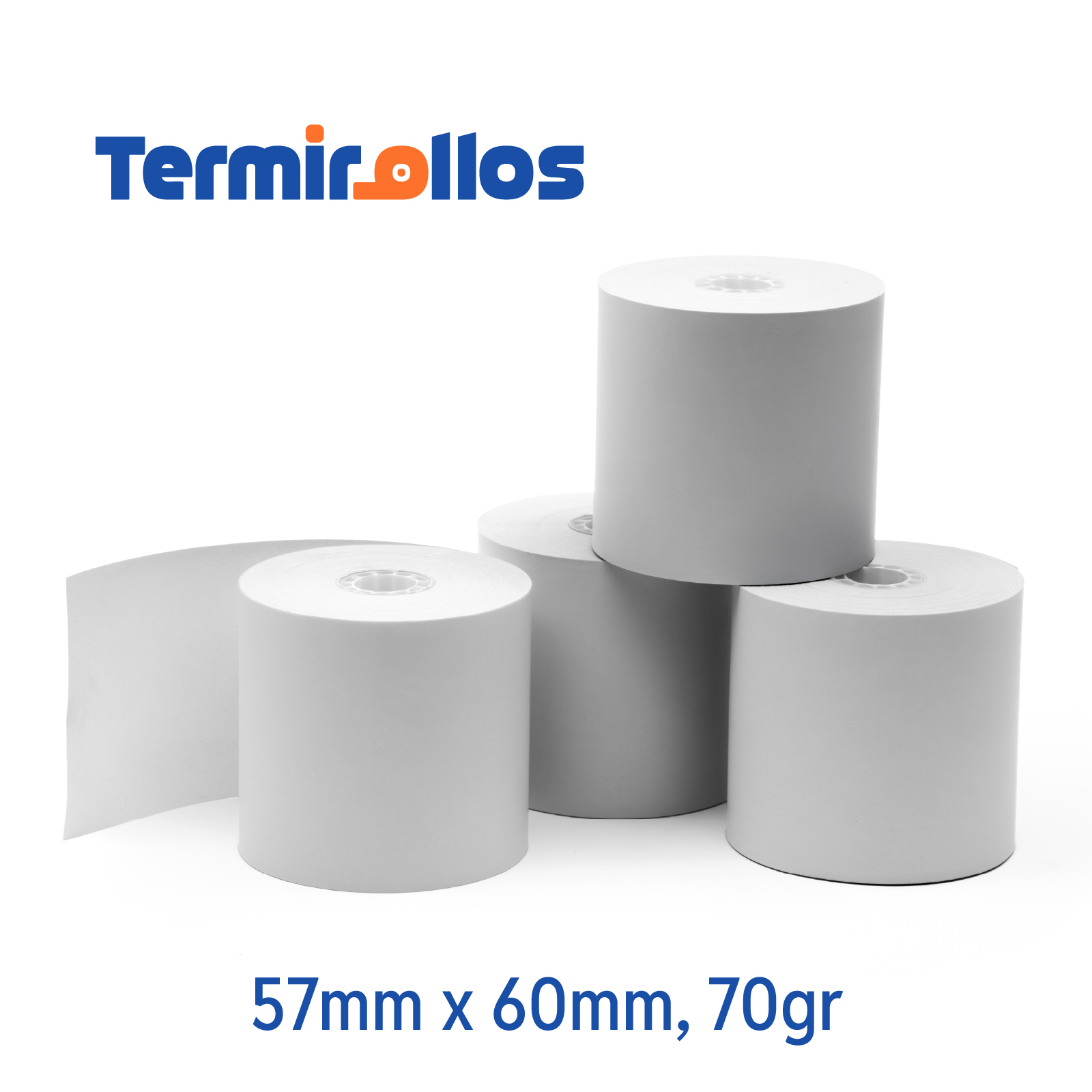 ROLLO PAPEL TERMICO LIBRE BPA 57MM ANCHO X 60MM DIAMETRO 70GRS 30MTS CAJA DE 50 ROLLOS